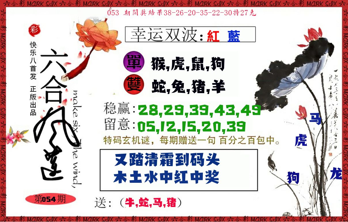 054期:四季生肖【夏冬秋】开:??准