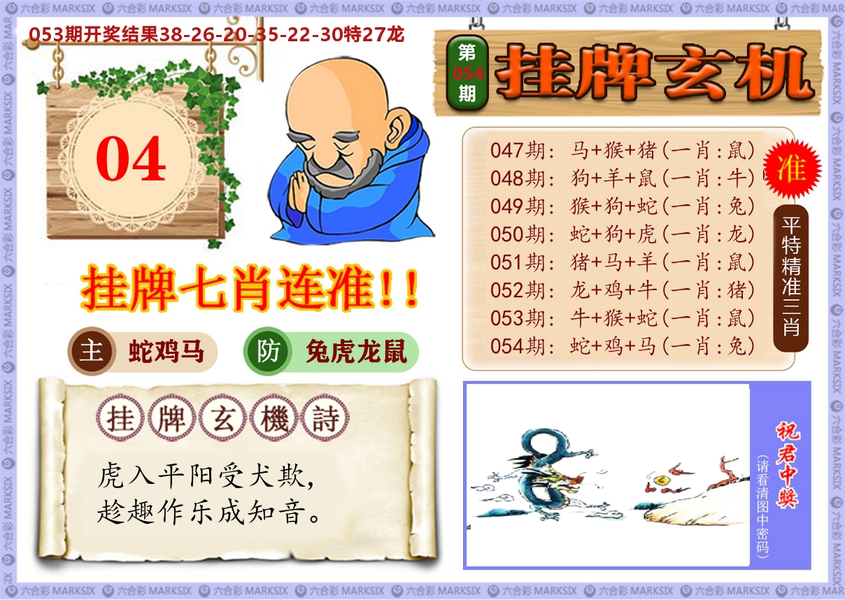 053期天地中特【天肖天肖】开:27龙准
